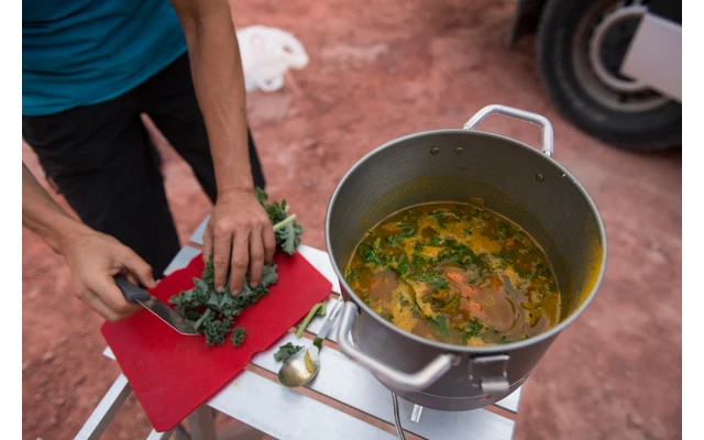 Das Bisphenol A (BPA)-freie Alpine Deluxe-Schneidebrett besteht aus zwei starren Hälften, die mit einem Klappscharnier verbunden sind, um die beste Kombination aus Haltbarkeit und Tragbarkeit zu gewährleisten.