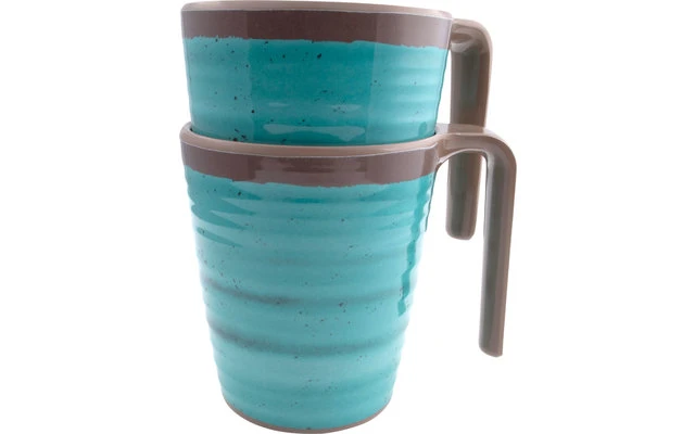 Ein leichter und stabiler Becher mit Henkel. Außerdem ist er praktisch unzerbrechlich, bruchfest und kratzfest. Das Set besteht aus 4 Bechern. Sie bestehen aus Melamin, sind spülmaschinenfest und lebensmittelecht.