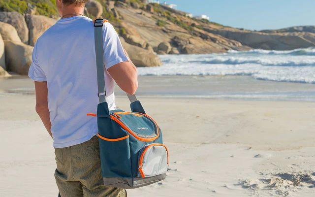 - Austattung: Große Öffnung zum Befüllen und Entnehmen, zwei Seitentaschen für Flaschen oder Schirm, nicht isolierte Fronttasche für Accessoires, Tasche mit Reißverschluss im Deckel, verstellbarer Schulterriemen