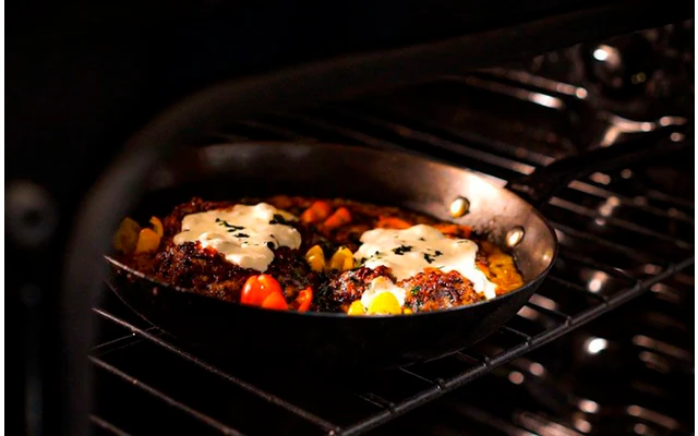 - Der polierte Boden eignet sich zum Kochen auf dem Herd, auf dem Induktionsherd, im Backofen, im Bratrost oder auf dem Lagerfeuergrill