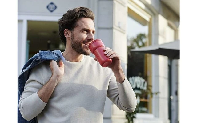 Und ganz nebenbei entlastet Du auch die Umwelt, denn Du sparst mit dem wiederverwendbaren Reisebecher bis zu 260 Einwegbecher pro Jahr! Dank seiner kompakten Größe passt der Reisebecher in nahezu jede Tasche. Und keine Sorge: Der Becher ist 100% auslaufsicher! Der doppelwandige Reisebecher mit einem Inhalt von 275 ml hält Deine Getränke bis zu 30 Minuten warm und kann nach Gebrauch komplett in der Spülmaschine gereinigt werden.