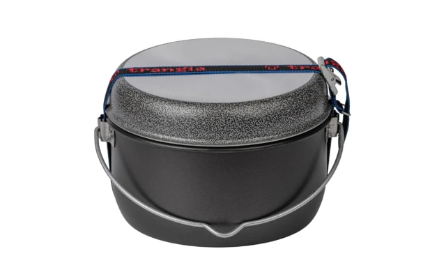 Campingset mit Wasserkocher, Bratpfanne und Zubehör, zu verwenden über jeder Wärmequelle.